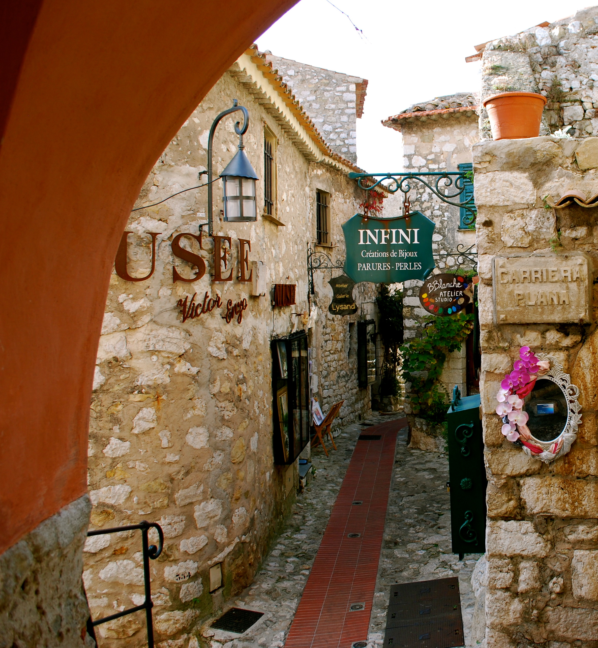 Èze Village, once home to the Phoenicians, then to the Romans and even to the Moors, rests on the top of a cliff some 500 meters above the Mediterranean shores of the Riviera, so breathtaking sights are a no brainer. But the true peacefulness of the village comes from its stone walls and alleyways, which you cannot navigate without getting a bit lost, without feeling a bit small, nor simple, nor somewhat archaic. The artisan stores throughout Èze also hint to more primordial times as wooden, metal, and handmade souvenirs dominate the shop windows, although the prices tend remind you that you are indeed in modern day France.