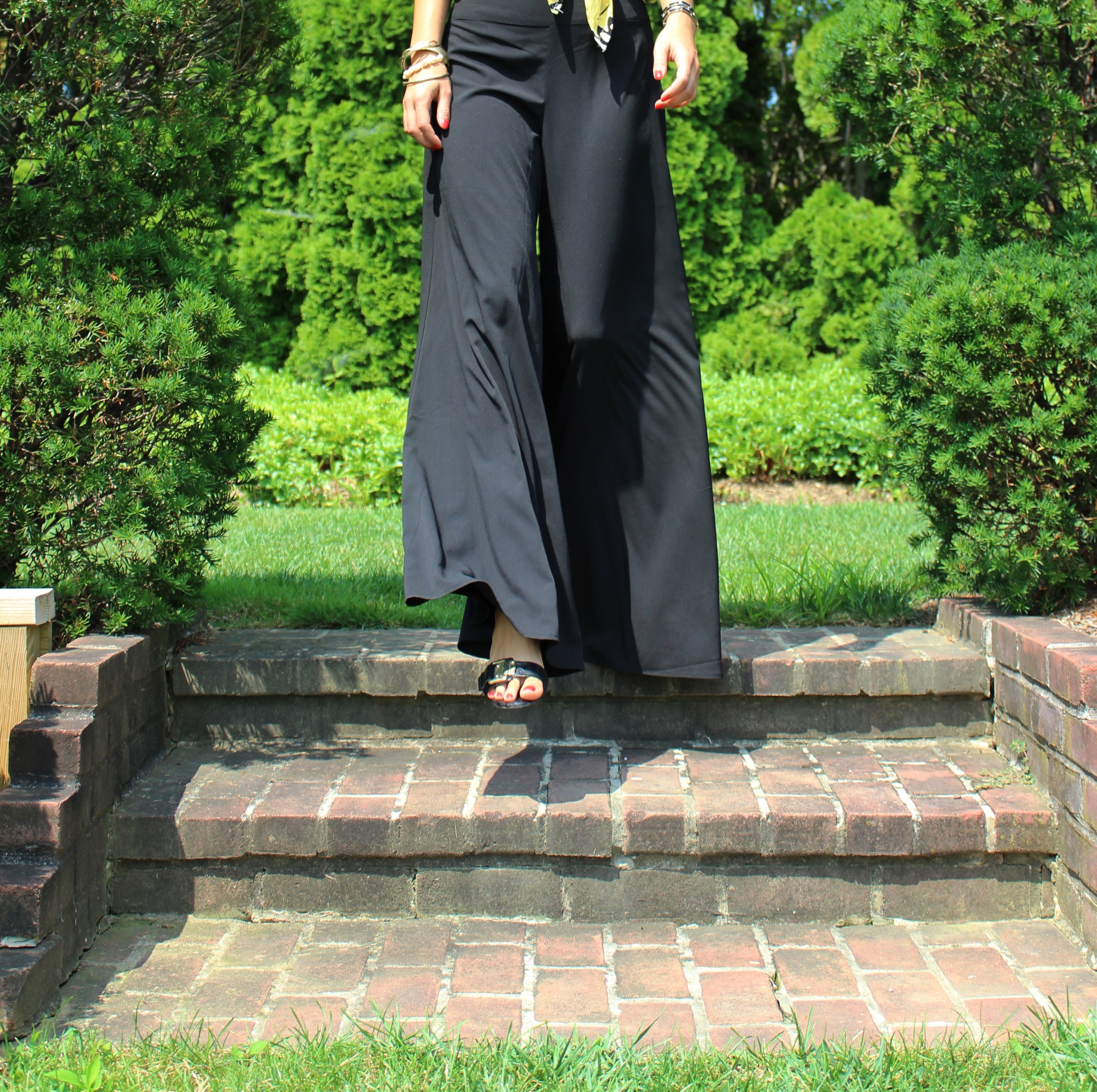 BB Dakota Palazzo Pants || Vintage Silk Button Up || Nine West Sandals || Chico’s Bangles & Watch