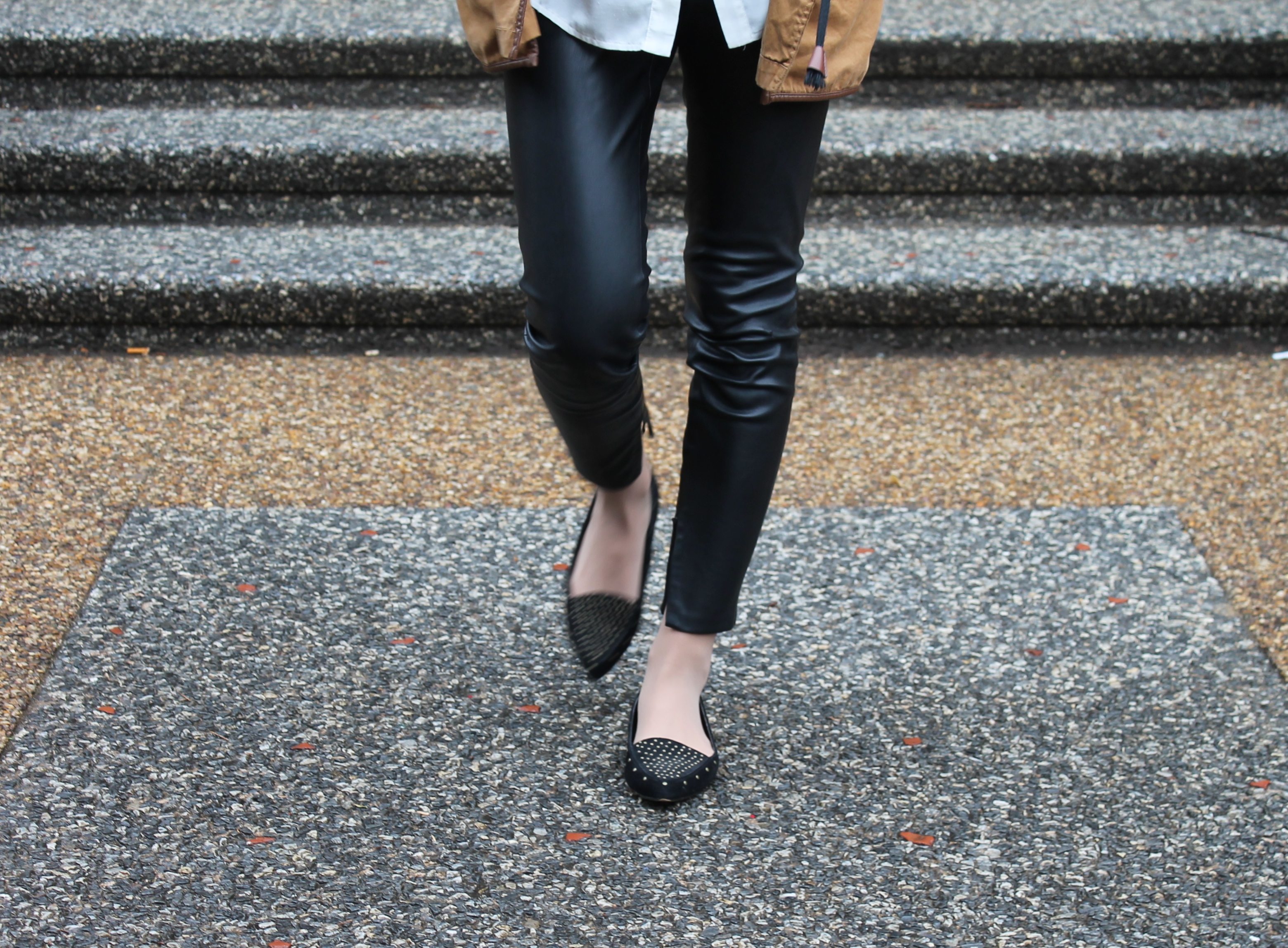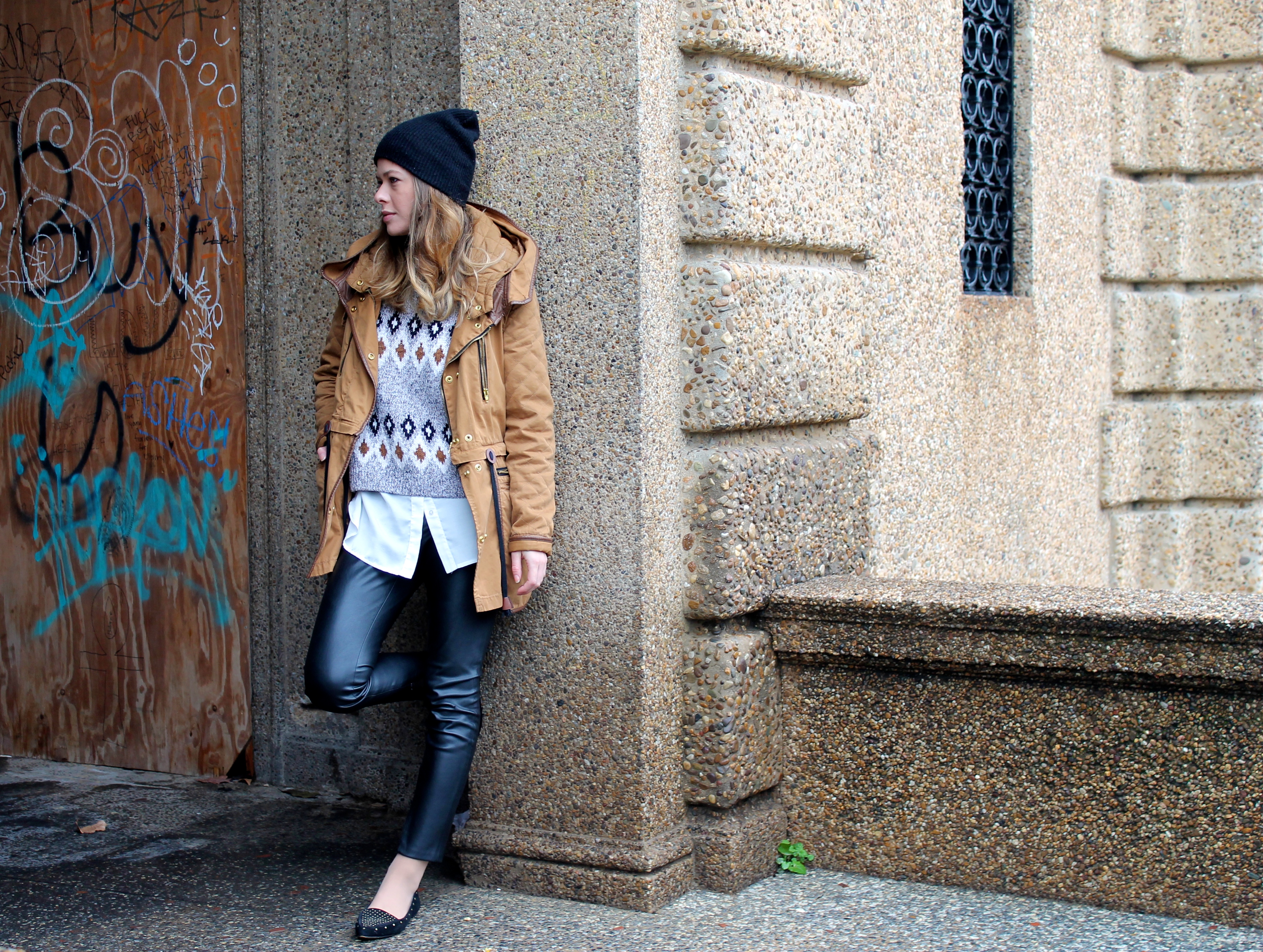 Zara Parka || H&M Sweater || Chico’s Button Up ||Zara Faux Leather Pants|| Dolce Vita Flats