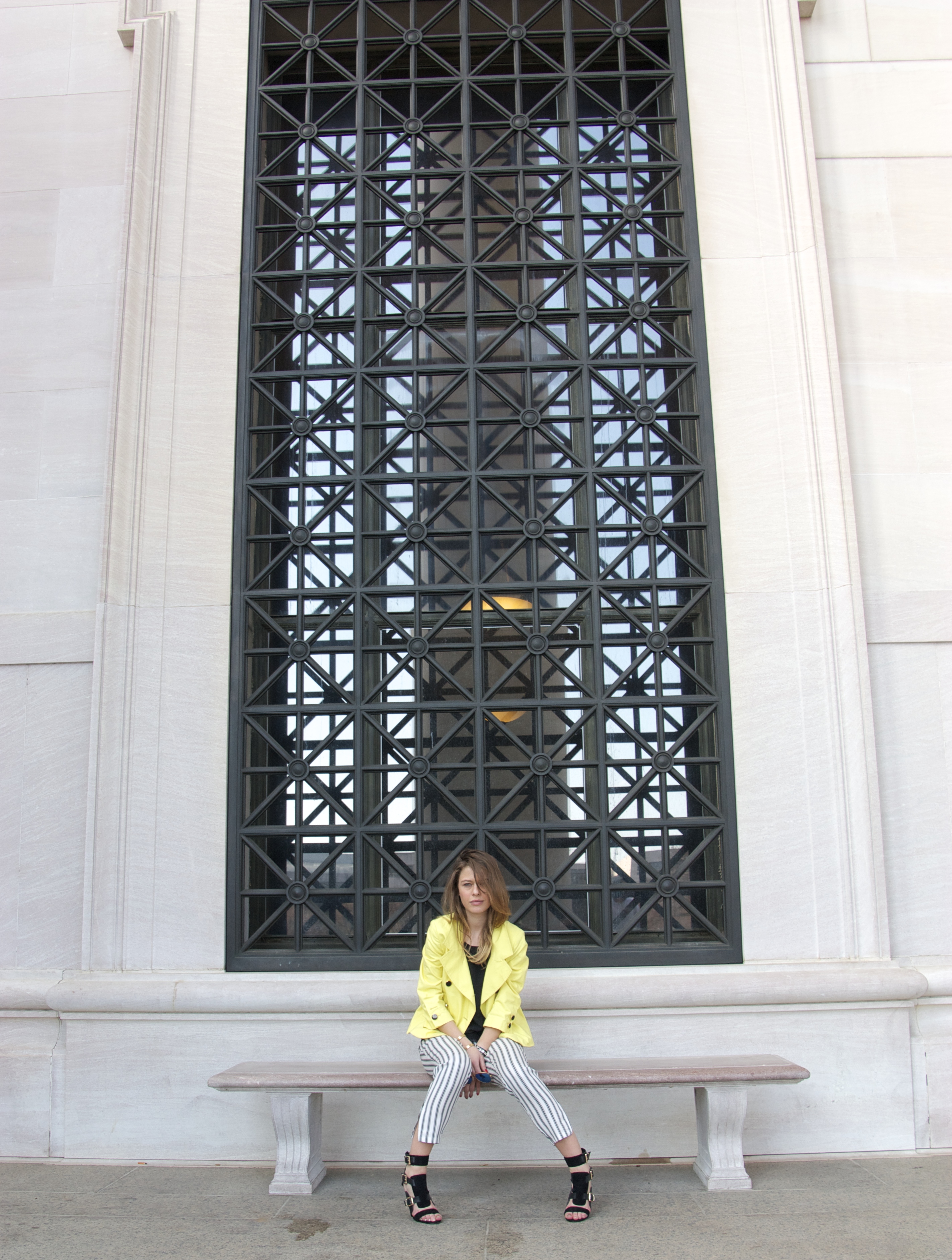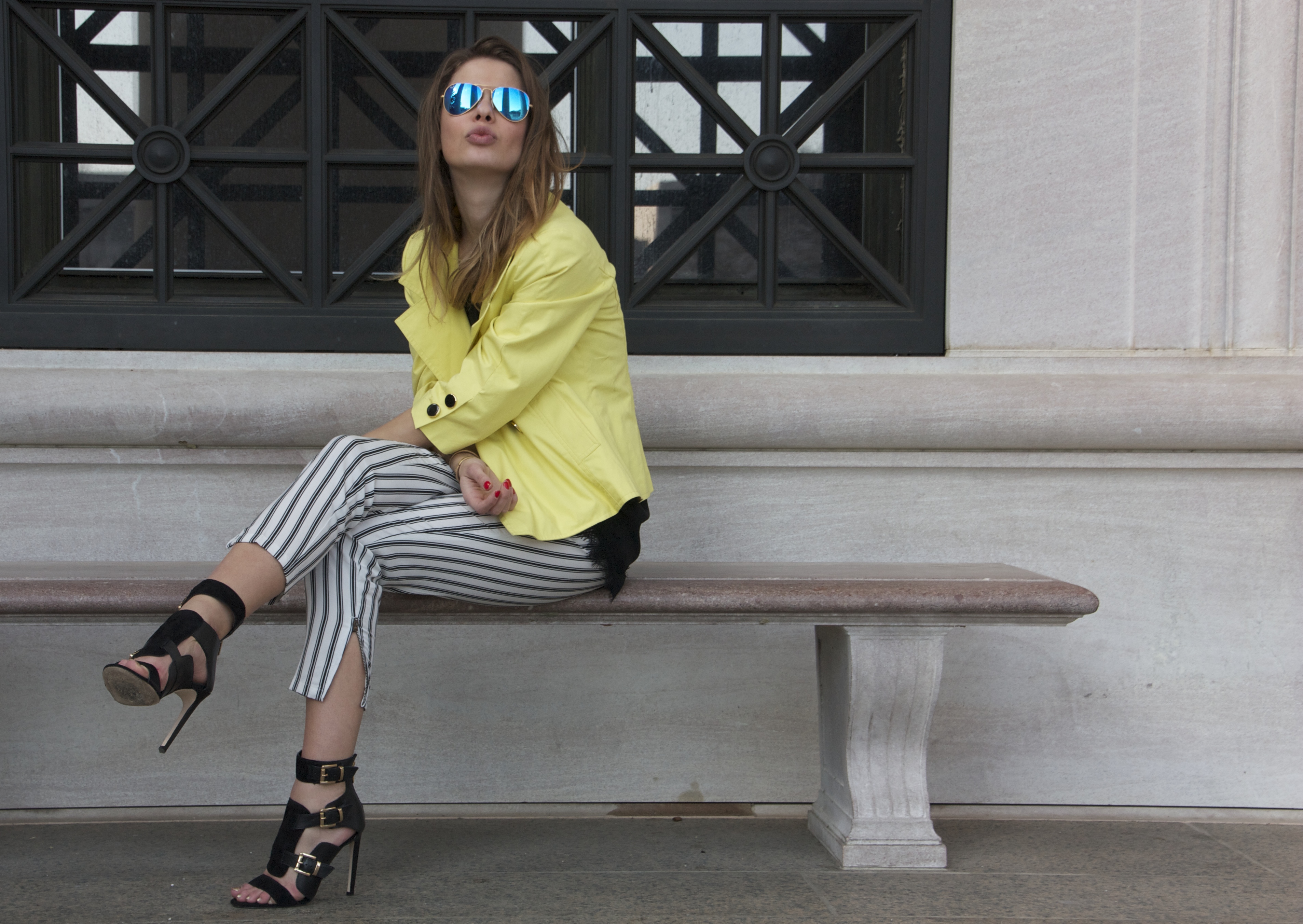Love this post. That outfit is fabulous! Loving the yellow in the blazer and the striped pants are gorgeous. Great pictures x