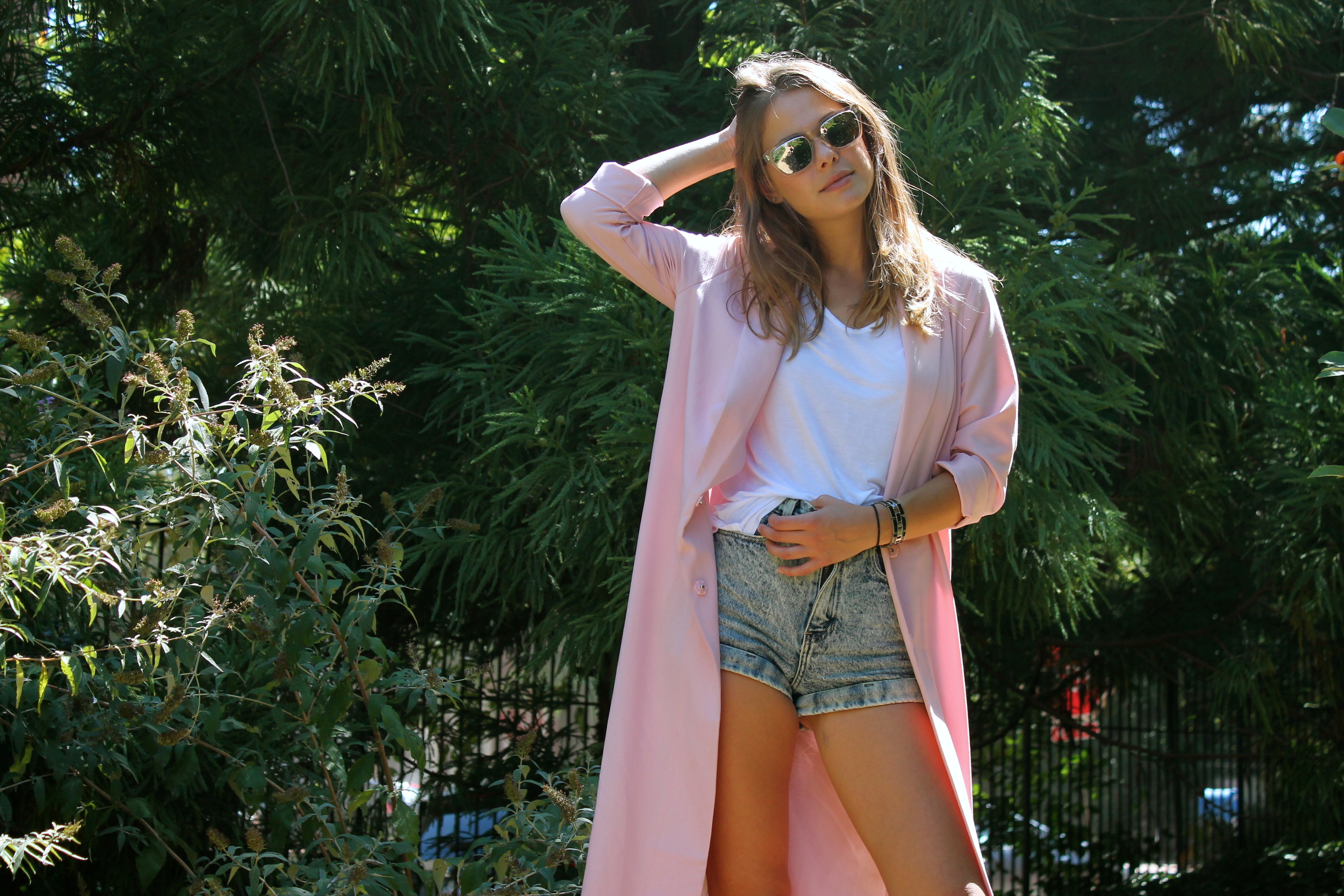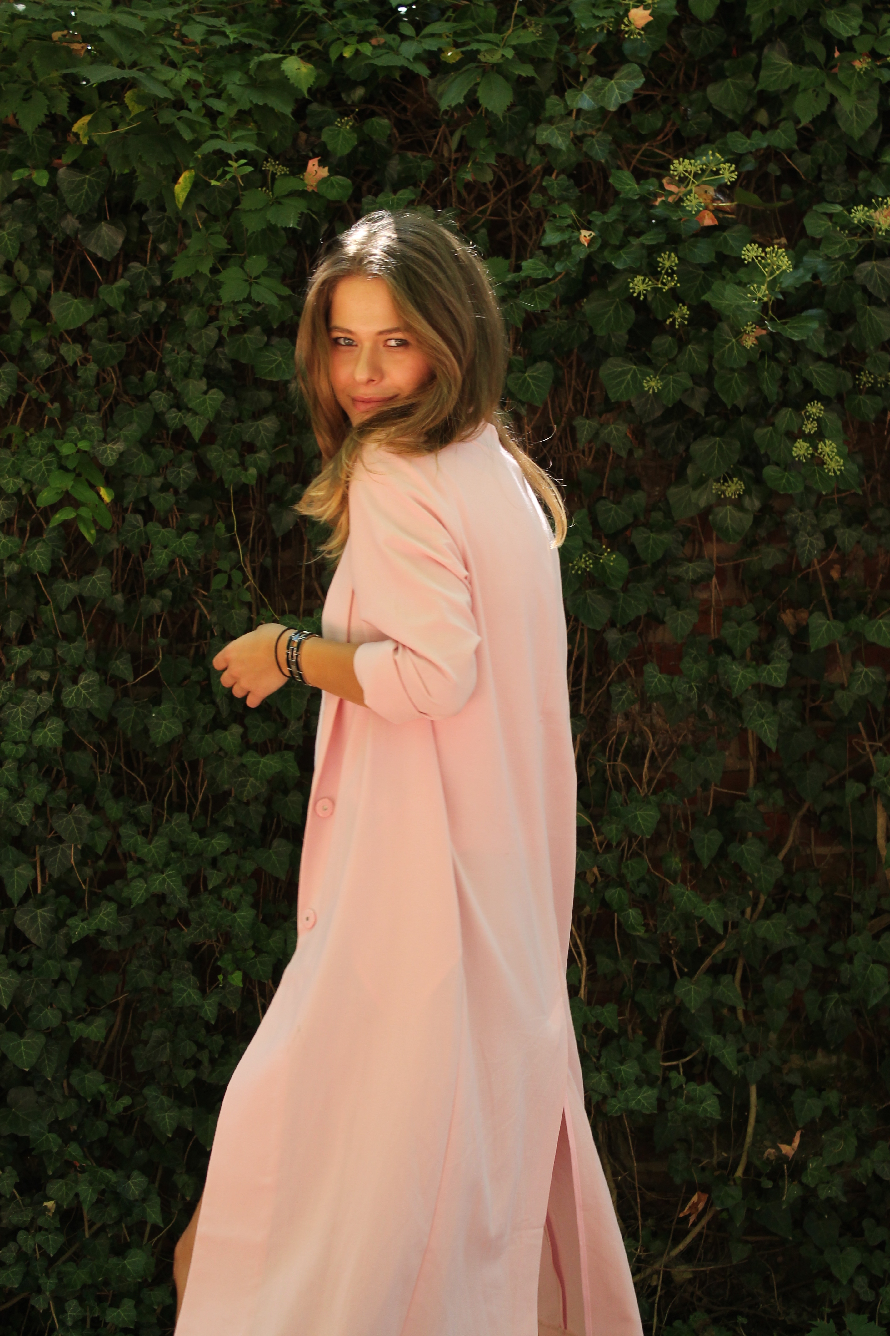 3. The long pink coat styled with your outfit is nice and unexpected.